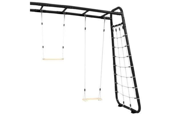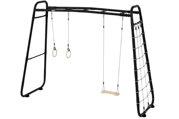 | Inclusief accessoires | Oefenstang, houten turnringen, trapeze, schommel en klimnet |