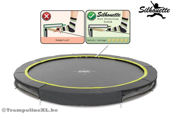 Silhouette ground 244 trampoline met een maximaal belastbaar gewicht tot 50 kilo. Vinden uw kinderen het ook zo fantastisch om te springen op een trampoline? Dan is de Silhouette ground echt iets voor u! Deze trampoline heeft een diameter van 244 cm en moet worden ingegraven. Omdat de veren worden afgedekt door een beschermrand kunnen kinderen hier niet met hun voetjes bijkomen! De Silhouette ground is uitgerust met 14 cm lange veren die ook na jaren springen nog steeds garant staan voor een stevige sprongkracht en voor comfort!