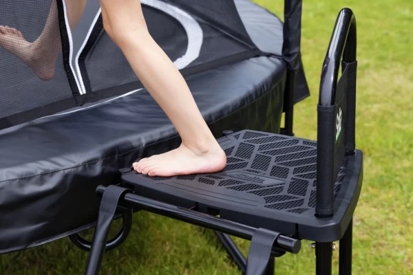 Met het Salta Platform stap je veilig en comfortabel op je trampoline. Dit stevige opstapplatform is in hoogte verstelbaar van 58 tot 108 cm en wordt inclusief trapje maat L geleverd. Dit maakt de set geschikt voor elk trampolineframe met een hoogte van 83 tot 93 cm. Het biedt directe ondersteuning bij het beklimmen door de stabiele stalen leuning en kan in combinatie met iedere ladder gebruikt worden. Het ruime plateau geeft voldoende plek voor beide voeten, zodat je eenvoudig door het veiligheidsnet stapt. Dankzij het antislip-profiel sta je ook met sokken of blote voeten stevig en veilig, terwijl regenwater door de slimme afwatering niet blijft liggen. Het platform is gemaakt van duurzaam polypropyleen en kan tot 180 kg dragen.
