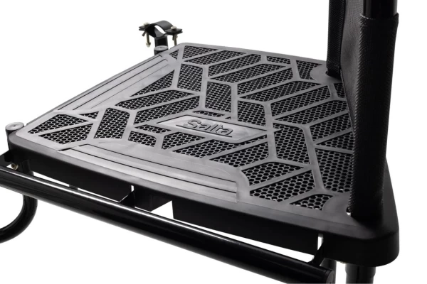 Met het Salta Platform stap je veilig en comfortabel op je trampoline. Dit stevige opstapplatform is in hoogte verstelbaar van 58 tot 108 cm en past dankzij de universele bevestigingsbeugels op vrijwel elk trampolineframe met een hoogte van 62 tot 108 cm. Het biedt directe ondersteuning bij het beklimmen door de stabiele stalen leuning en kan in combinatie met iedere ladder gebruikt worden. Het ruime plateau geeft voldoende plek voor beide voeten, zodat je eenvoudig door het veiligheidsnet stapt. Dankzij het antislip-profiel sta je ook met sokken of blote voeten stevig en veilig, terwijl regenwater door de slimme afwatering niet blijft liggen. Het platform is gemaakt van duurzaam polypropyleen en kan tot 180 kg dragen.