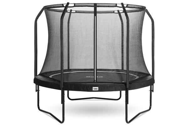 De Premium Black 396 is een grote ronde trampoline van Salta. Compleet in het zwart geleverd: een zwart stalen frame, een 34 cm brede beschermrand, een zwarte springmat en een zwart veiligheidsnet rondom de trampoline. Hij kan maximaal 150 kg aan gewicht dragen. De springmat is bevestigd aan 72 dubbel conische veren van 16,5 cm. Staat prachtig in elke tuin!