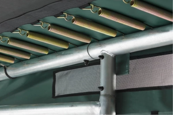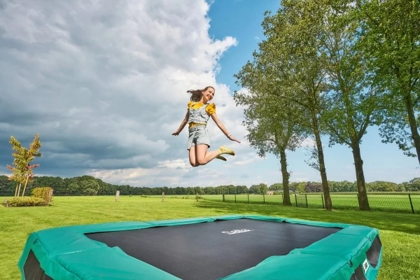 De Salta Premium Ground Sports is een ingraaftrampoline die perfect opgaat in elke tuin dankzij het strakke en moderne ontwerp. Doordat de trampoline slechts 21,5 cm boven de grond uitsteekt, is de op- en afstap laag en veilig. De rechthoekige trampoline is 366x244 cm en vervaardigd uit duurzame materialen van hoge kwaliteit. Het frame is robuust uitgevoerd en volledig gegalvaniseerd, zowel aan de binnen- als buitenzijde. De veiligheidsrand is voorzien van een geïntegreerd luchtstroomsysteem, waardoor lucht onder de springmat optimaal kan circuleren. In combinatie met de lage 185 mm veren zorgt dit voor een soepele en krachtige sprong! De extra dikke PVC beschermrand biedt kan met de meegeleverde verankeringsset stevig aan de grond worden bevestigd.